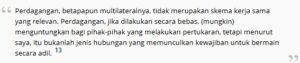 Pendukung nasionalisme lainnya beralasan bahwa keadilan redistributif membutuhkan badan yang bersifat memaksa seperti pemerintah negara-bangsa untuk menegakkan tuntutan keadilan dan mengawasi redistribusi, yang tidak memiliki akibat wajar di arena internasional. 16 Tanpa adanya struktur hukum dan badan penegakan, tidak ada tuntutan keadilan yang dapat diajukan yang akan memungkinkan redistribusi untuk menyelesaikan ketidaksetaraan. 17 Makalah ini akan berasumsi bahwa tidak ada lembaga internasional yang secara hukum dapat menegakkan tuntutan keadilan distributif dan namun seseorang dapat dengan tepat membuat tuntutan moral atas ketidakadilan distributif bahkan tanpa adanya tuntutan korelatif yang dapat ditegakkan secara hukum.